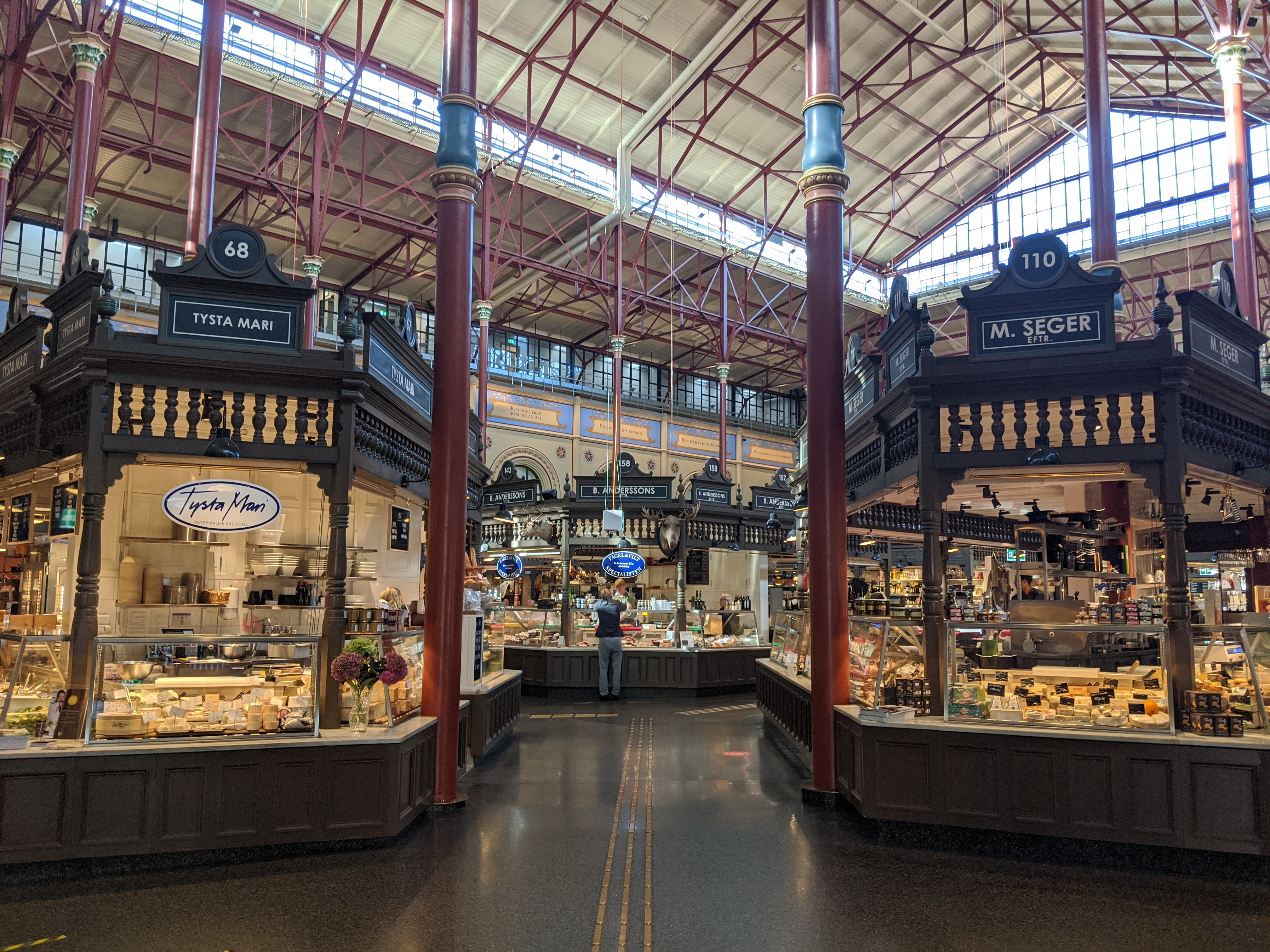 Our first stop was Östermalms saluhall, a food hall with over 130 years of history. Here the vendors sell sweets, tarts, reindeer meat, quiche, cheeses…we wanted to taste it all!